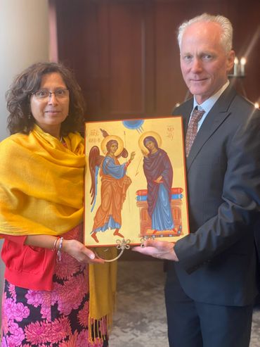 Consider giving a hand painted icon, which is bound to become a cherished heirloom.